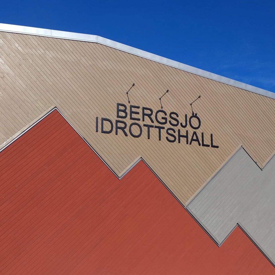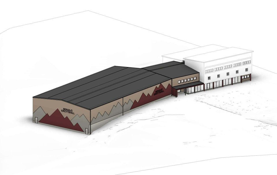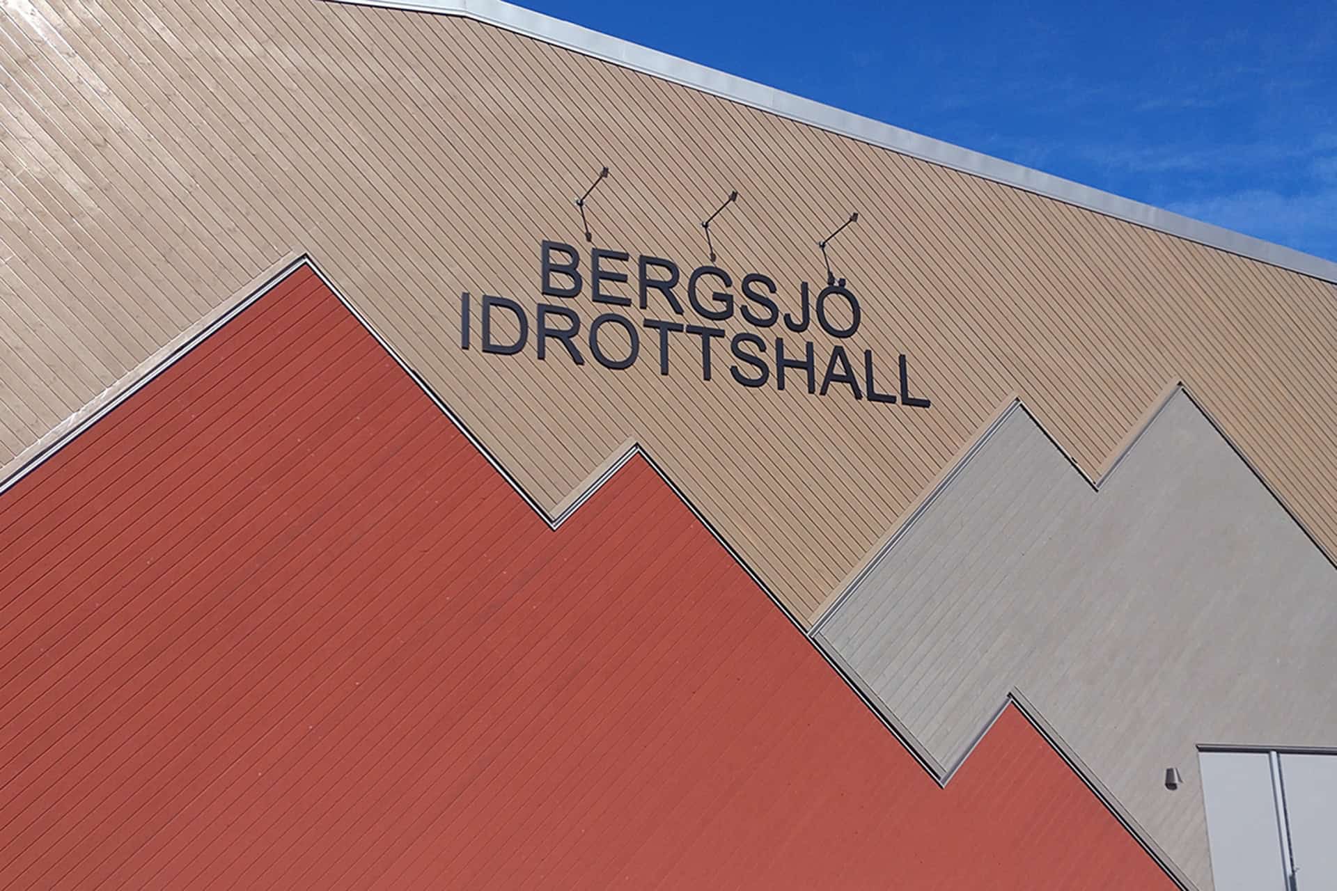 Bergsjö idrottshall är en tillbyggnad av den befintliga idrottshallen och simhallen vid Bergsjö skola. I det starkt kuperade landskapet placerades halldelen, med 20x40m bollplan och redskapsförråd, i souterräng för att så mycket som möjligt relatera med den omgivande bebyggelsens skala. Entré, omklädningsrum och teknik placerades i en länkbyggnad i nivå med det befintliga entréplanet.