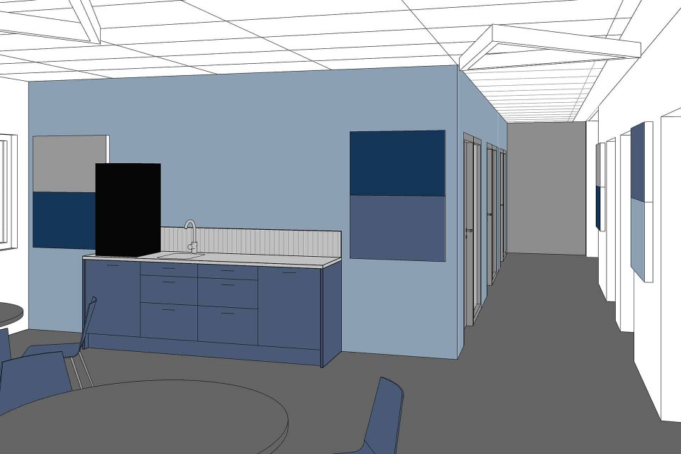 Ombyggnaden omfattar bland annat ny entré, konferens, mötesrum, lounge, kontor, kommunikationsytor samt pausrum med kök. Utifrån beställarens moodboard skapades en färgsättning som ska spegla deras varumärke.